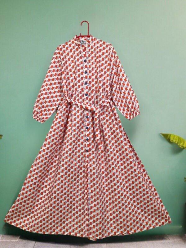 MC-0007 women’s lawn/cotton printed front open elastic back with belt maxi