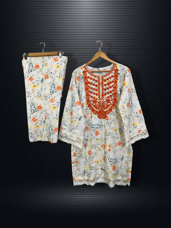 SC-0025 Womenās two piece lawn vneck embroidered kurti with bell bottom suit