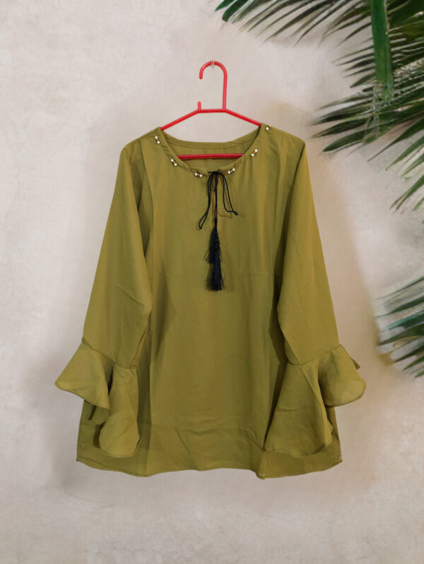 GC-0006 women’s georgette neck pearl with tussle frill sleeves top