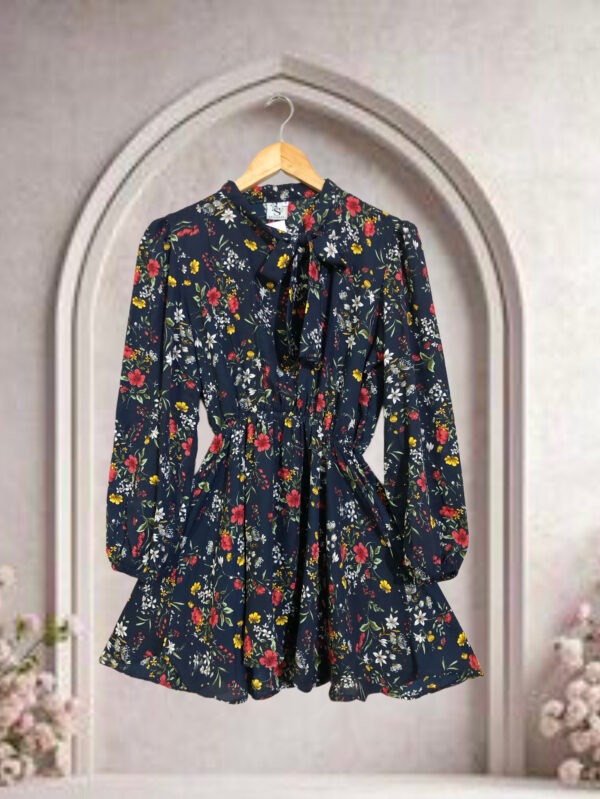 GC-0003 women’s georgette printed mock neck tie elastic waist peplum top