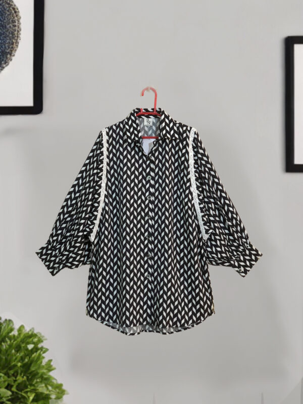 LC-0012 women’s linen front open lace work baggy sleeves top