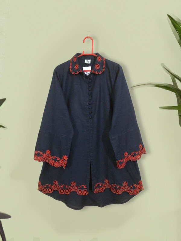 CC-0002 women’s lawn/cotton front loops button embroidered tale top