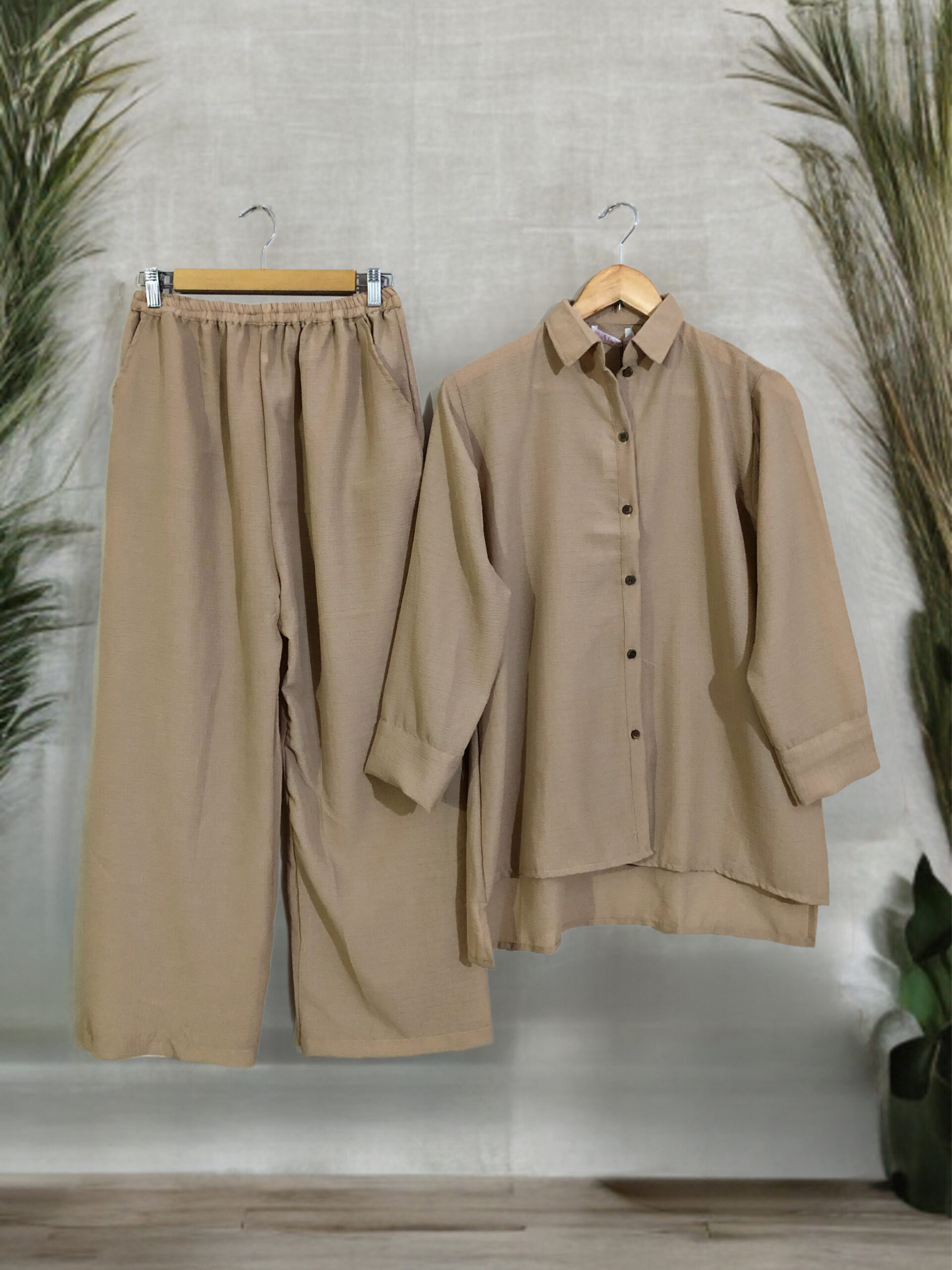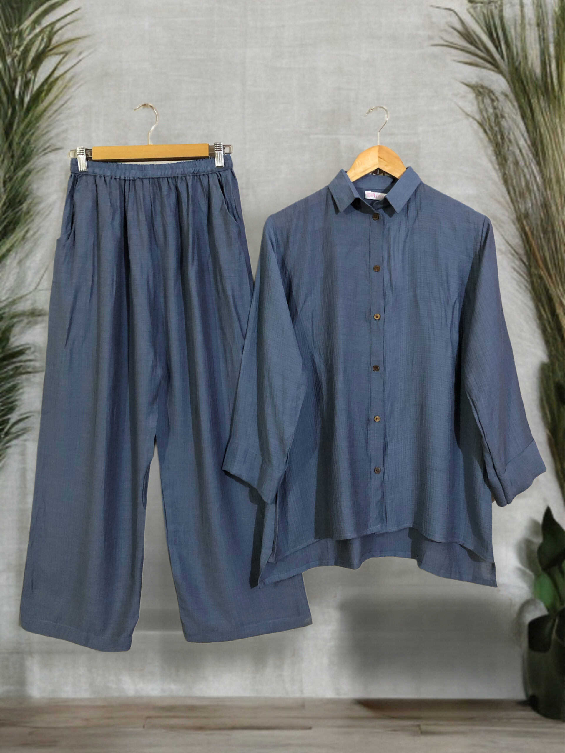 SC-0005 Women’s two piece crinkle cotton solid front open tail top with palazzo suit