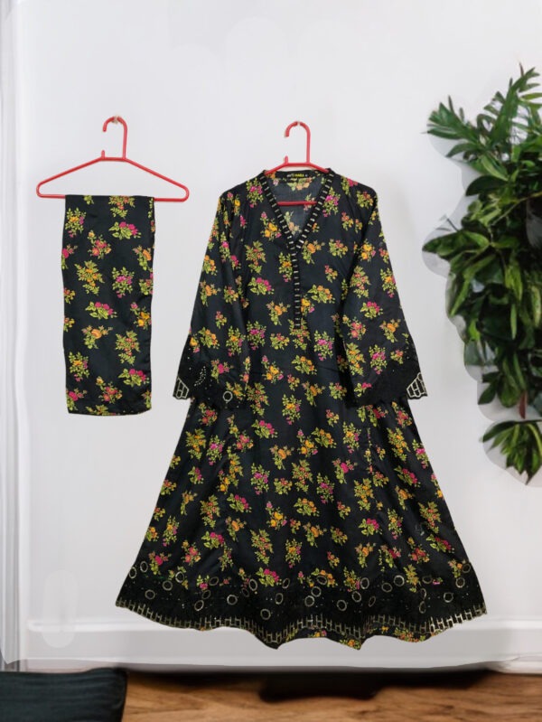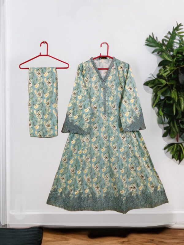 SC-0025 Womenās two piece lawn vneck embroidered kurti with bell bottom suit