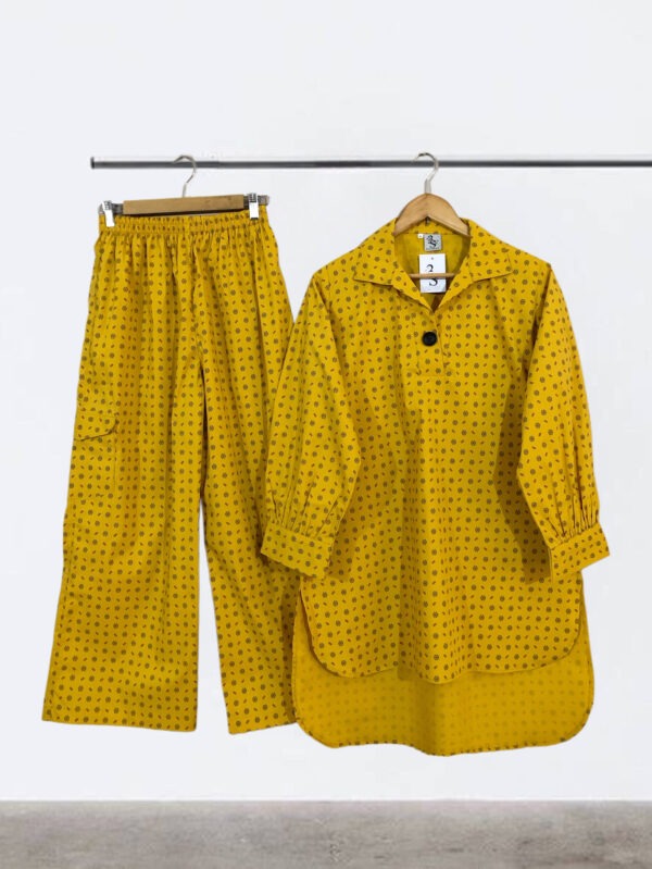 SC-0008 women’s two piece irish cotton yarn-dyed work top with palazzo suit